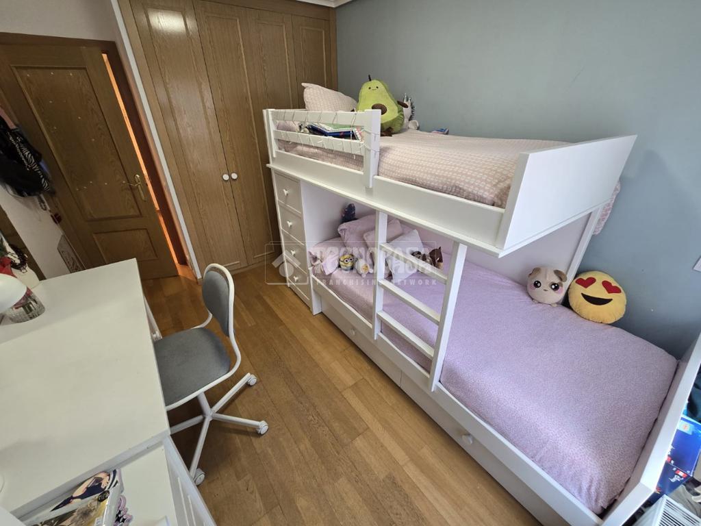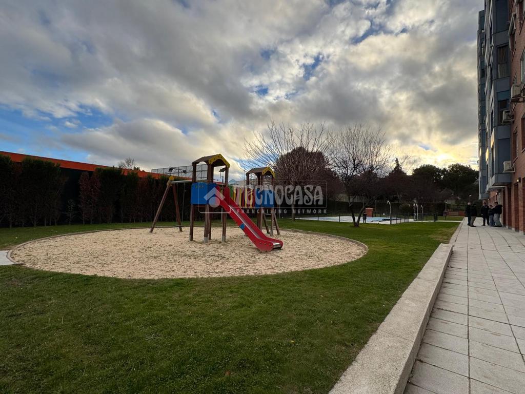 Piso en urbanización privada, con garaje, trastero, piscina y amplias zonas verdes. Ubicado en zona residencial con muy buena comunicación, tanto en transporte público —con el metro San Fermín-Orcasur muy cerca y varias paradas de autobús a 5 minutos— como para desplazarte en coche, ya que tienes acceso directo a la M-30 y la M-40.